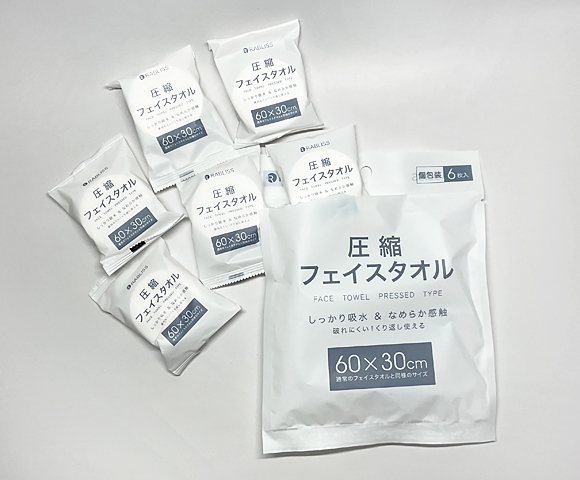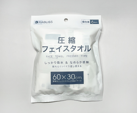 サイズ | 広げた時(約):60×30cm 圧縮時(約):径4,5×厚み1,3cm、重さ15,6g |