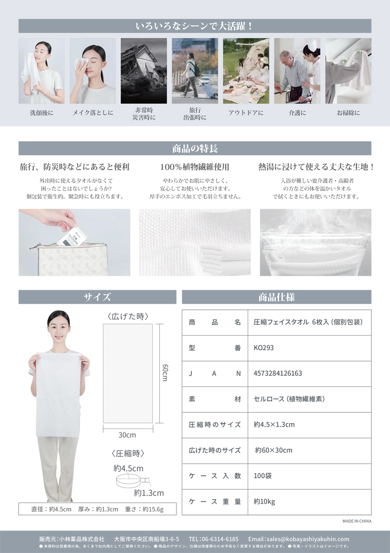 - コンパクトに円形圧縮で携帯、保管に便利。