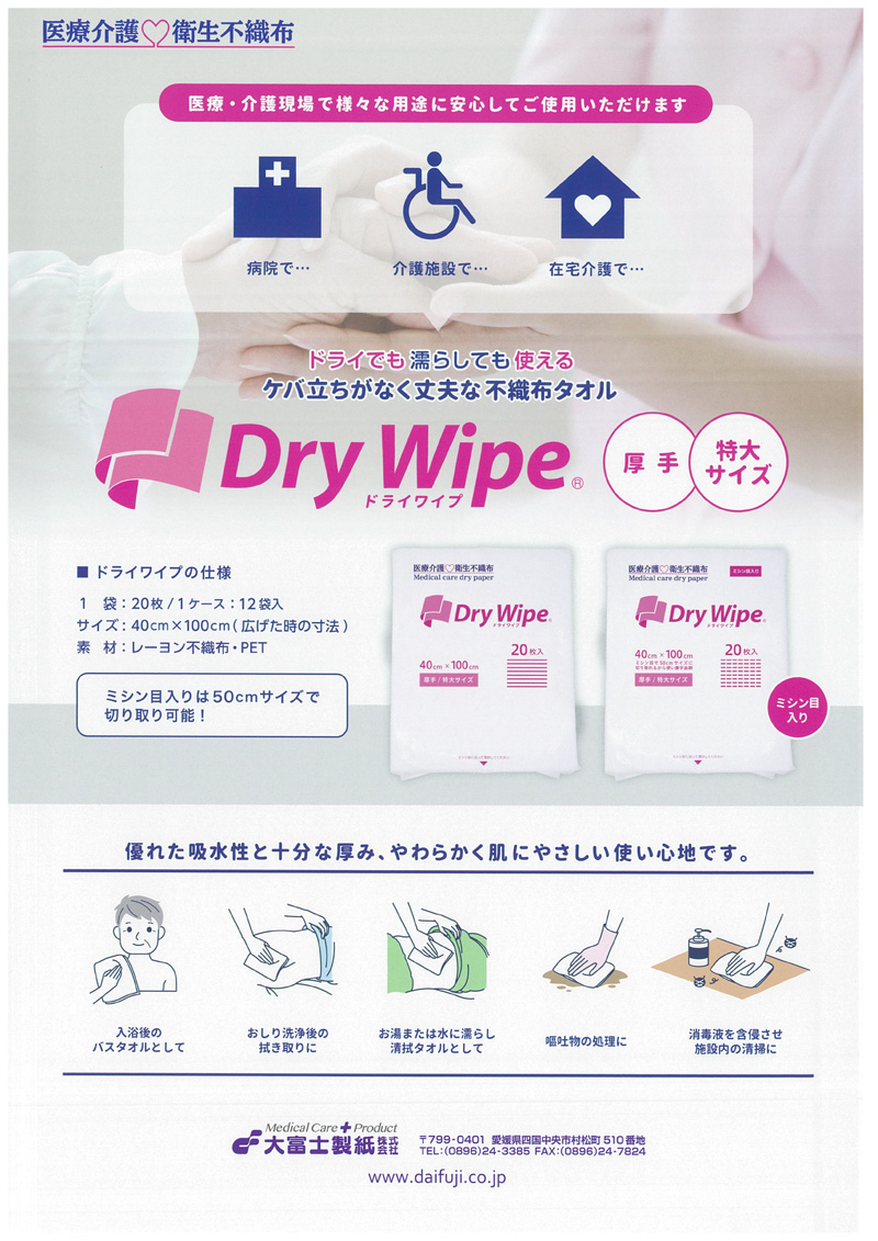 - バスタオル、フェイスタオルとしてからだの清拭。