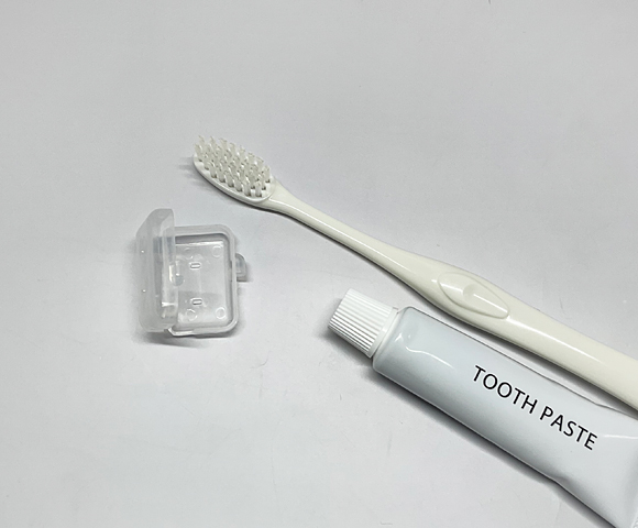 - しっかりした歯ブラシと歯磨きチューブ20gのセット。
