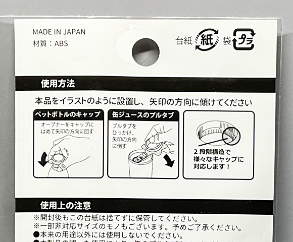 ペットボトル、缶開けに