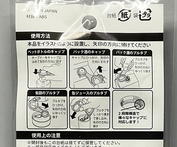 - ペットボトル、パック酒、缶詰、缶ジュースなど対応。